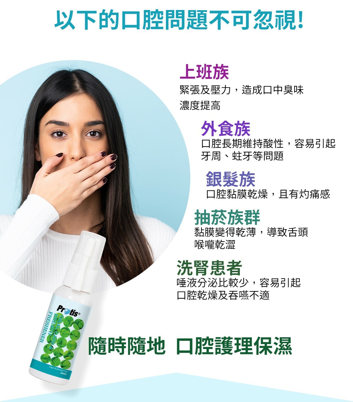 使用方式:將噴嘴朝向口中,按壓2-3次即可。