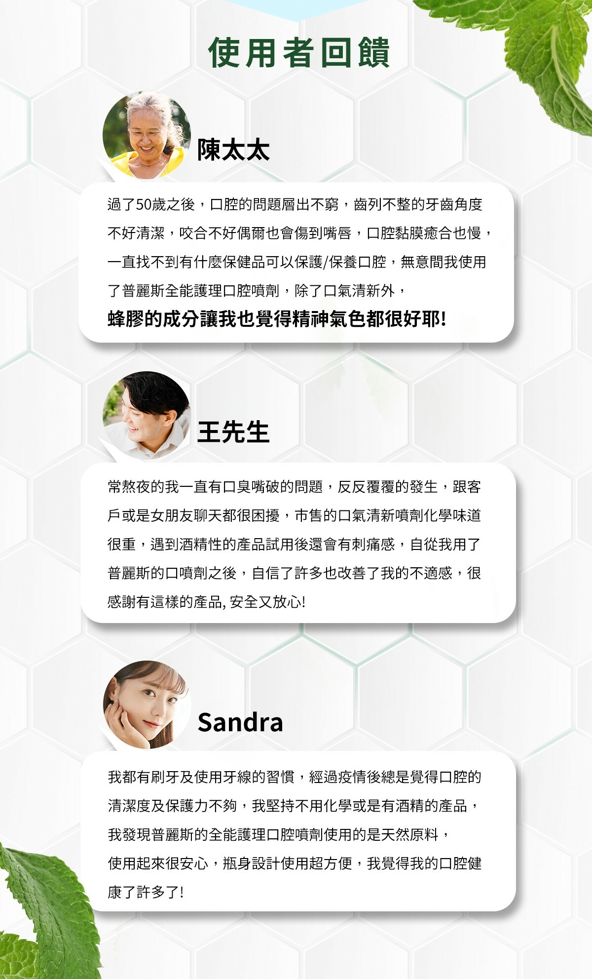 銀髮族: 口腔黏膜保濕,預防口乾,避免灼痛感