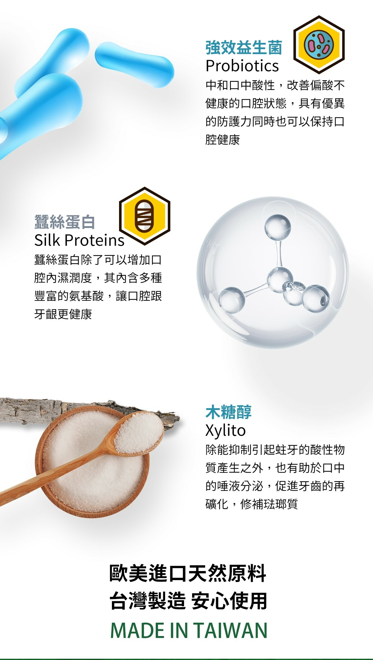 蠶絲蛋白(Silk Proteins): 增加口腔內保濕,保持口腔健康